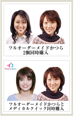 抗がん剤治療による脱毛に使用する医療用かつら「メディカルクイック」 来店タイプと通販タイプをご用意しています。 いづれもセミオーダーメイドです。 髪が抜けて増減する抗がん剤脱毛などの患者様に対応しています。 |